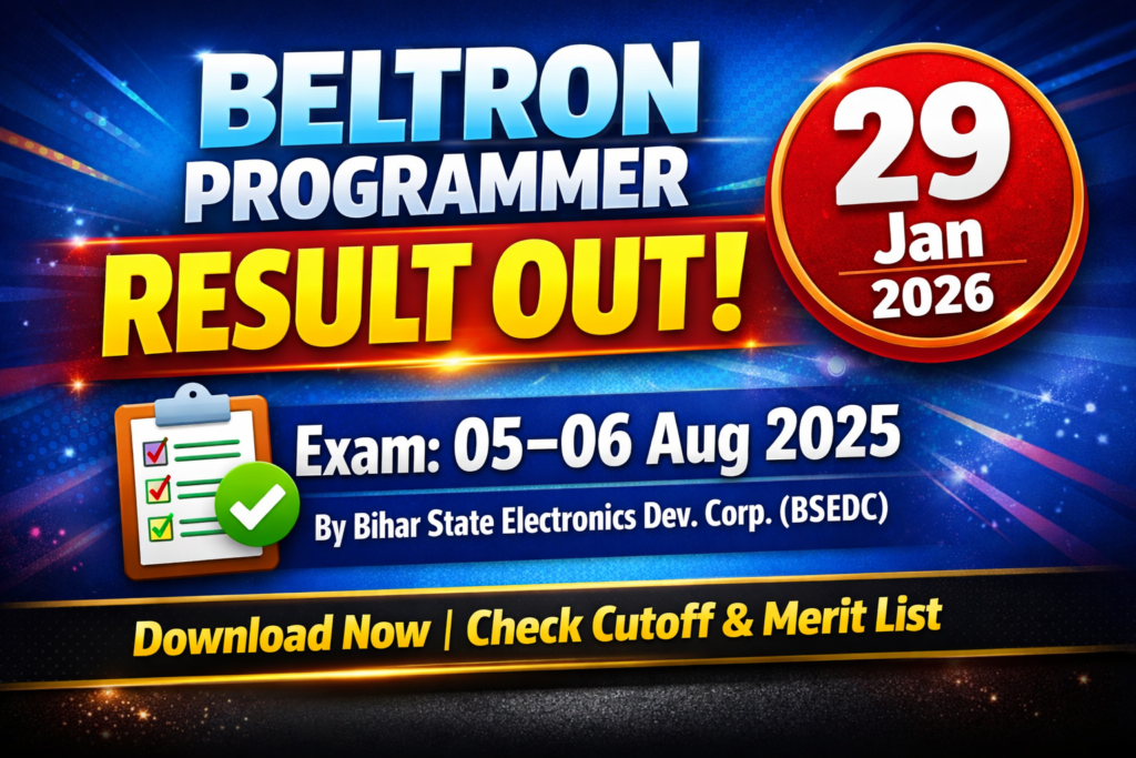 Bihar State Electronics Development Corporation Limited (BSEDC) has released the Result on its official website for the Programmer Recruitment Examination 2025 conducted under BELTRON. The application process began on 11 November 2024 and remained open until 10 December 2024, while the examination was held on 05 and 06 August 2025. Candidates can check and download their result by logging into the portal using their Registration Number, Enrollment Number, or Date of Birth, and the direct link to access the result is provided below.