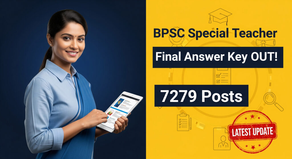 Bihar Public Service Commission (BPSC) has officially released the Final Answer Key for the recruitment of Special School Teacher posts on its official website. The examination was conducted on 29 January 2026, and the last date to submit the application form was 28 July 2025. Candidates can check the Final Answer Key by logging into the portal using their Enrollment Number, Registration Number, or Date of Birth, and a direct link to access it is provided below (Advt. 42/2025).