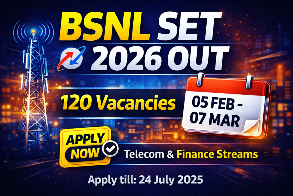 Bharat Sanchar Nigam Limited (BSNL) has released an official notification on its official website for the recruitment of Senior Executive Trainee SET posts under Advertisement No. BSNLCO 11 12 11 1 2025 RECTT CO Part 1. This recruitment drive is being conducted for a total of 120 vacancies. The BSNL online application process will start from 05 February 2026, and eligible candidates can apply online until 07 March 2026. As per the eligibility criteria, the minimum age limit is 21 years and the maximum age limit is 30 years, calculated as on 07 March 2026. Candidates are advised to carefully review the complete notification, including eligibility conditions, age limit, selection process, and application guidelines, before applying for the BSNL Senior Executive Trainee Recruitment 2026, the full details of which are provided below.
