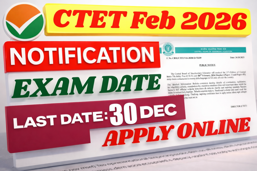 CTET परीक्षा तिथि: 08 फरवरी 2026
