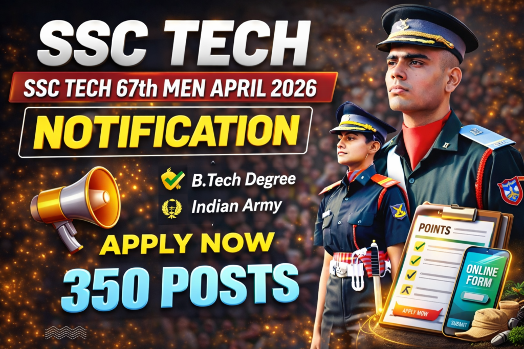 Join Indian Army (Bhartiya Sena) has released an official recruitment notification on its official website for the SSC Technical 67th Men Course April 2026 Batch. This recruitment drive is being conducted for a total of 350 vacancies. The Indian Army online application process started on 07 January 2026, and eligible candidates can submit their applications until 05 February 2026. As per the eligibility criteria, the minimum age limit is 20 years and the maximum age limit is 27 years, calculated as on 01 October 2026. Candidates are advised to carefully review the complete notification, including eligibility conditions, age limit, selection process, and other important instructions, before applying for the Indian Army SSC Technical 67th Men Recruitment 2026, the full details of which are provided below.