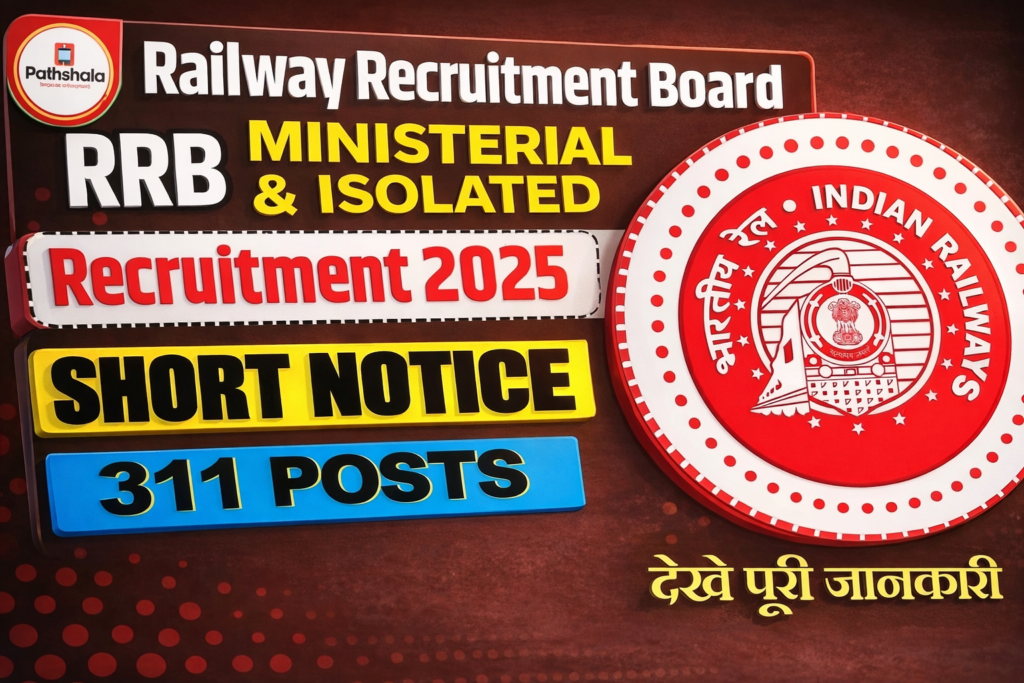 रेलवे भर्ती बोर्ड (RRB) ने अपनी Official Website पर Ministerial & Isolated Categories Recruitment 2025 के लिए Short Notice जारी की है। यह Recruitment कुल 312 Posts के लिए है। RRB Application Form 30 December 2025 से शुरू होगा और उम्मीदवार 29 January 2026 तक Apply कर सकते हैं। Minimum Age 18 Years और Maximum Age 40 Years है। उम्मीदवारों को RRB Ministerial & Isolated Categories Recruitment 2025 से संबंधित संपूर्ण जानकारी अवश्य देखनी चाहिए, जो नीचे दी गई है। (Advertisement Number: CEN 08/2025)