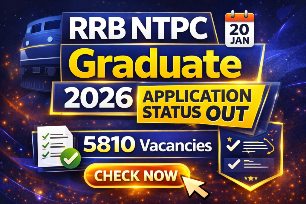 Railway Recruitment Board (RRB) has released the Application Status on its official website for the Non Technical Popular Categories NTPC Graduate Level recruitment under Advertisement No. CEN 06/2025. This recruitment drive is being conducted for a total of 5,810 vacancies. The RRB online application process was conducted from 21 October 2025 to 27 November 2025. As per the eligibility criteria, the minimum age limit is 18 years and the maximum age limit is 33 years, calculated as on 01 January 2026. Candidates can check their RRB NTPC Graduate Level Application Status 2026 by logging into the portal using their Enrollment Number, Registration Number, or Date of Birth. Complete details are also available on Official SarkariExam2026, with the direct link provided below.