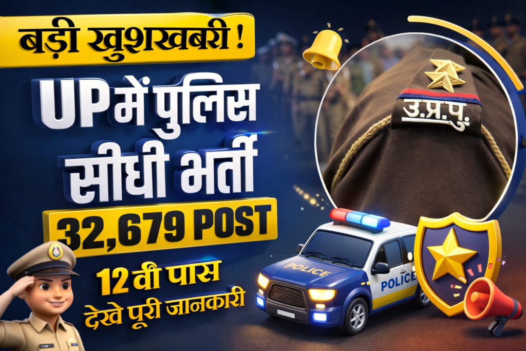 उत्तर प्रदेश पुलिस भर्ती एवं प्रोन्नति बोर्ड (UPPRPB) ने अपनी Official Website पर UP Police Constable Recruitment 2026 के लिए Notification जारी की है। यह Recruitment कुल 32,679 Posts के लिए है। UPPRPB Application Form 31 December 2025 से शुरू हो गए हैं और उम्मीदवार 30 January 2026 तक Apply कर सकते हैं। Minimum Age 18 Years और Maximum Age 25 Years है, जो 1 July 2025 तक मान्य होगी। उम्मीदवार UP Police Constable Recruitment 2026 से संबंधित All Details Official Website पर भी देख सकते हैं। Link नीचे दिया गया है।